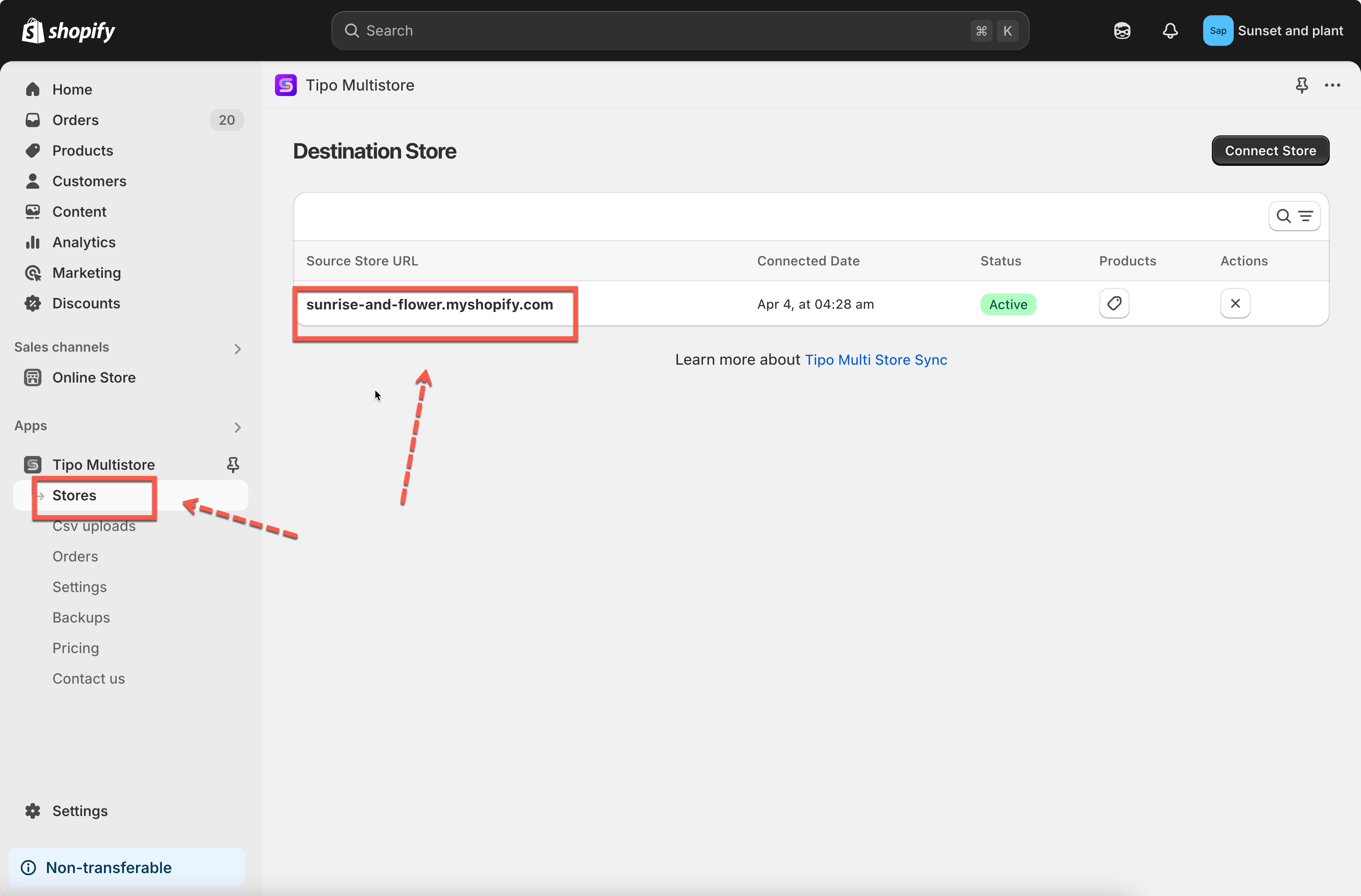 1. Go to the Destinations store > click Stores > click on the store URL of source store to view the connection detail