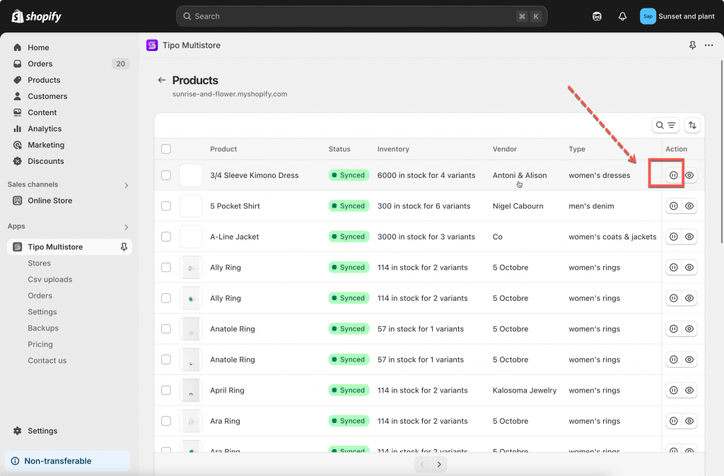 This guide explains how to unsync products between your Source store and Destination store. Unsyncing removes the link (mapping) so the product will no longer receive updates from the Source store.