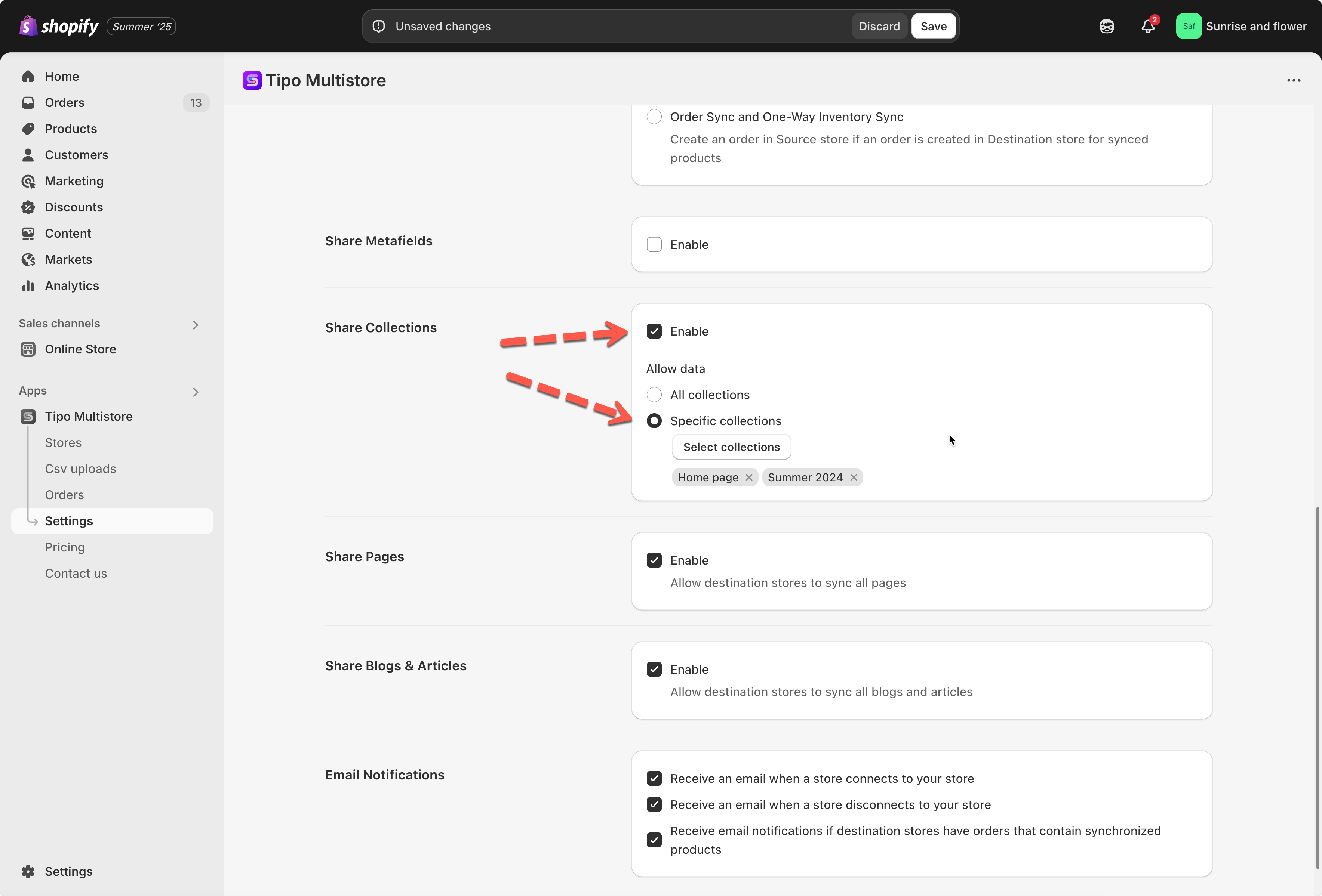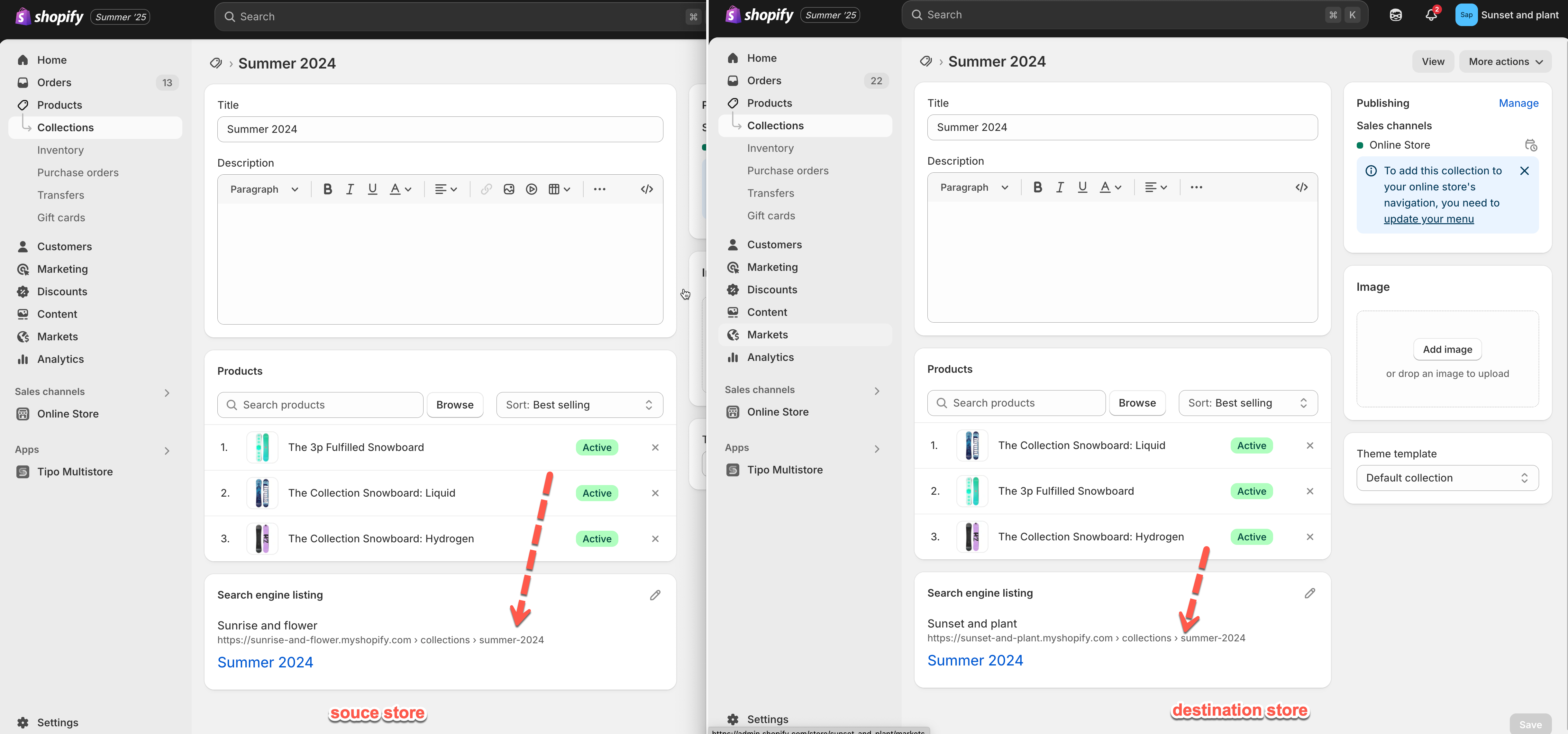 Note: Any future updates you make to the "Summer 2024" collection in the Source store will also appear in the Destination store.